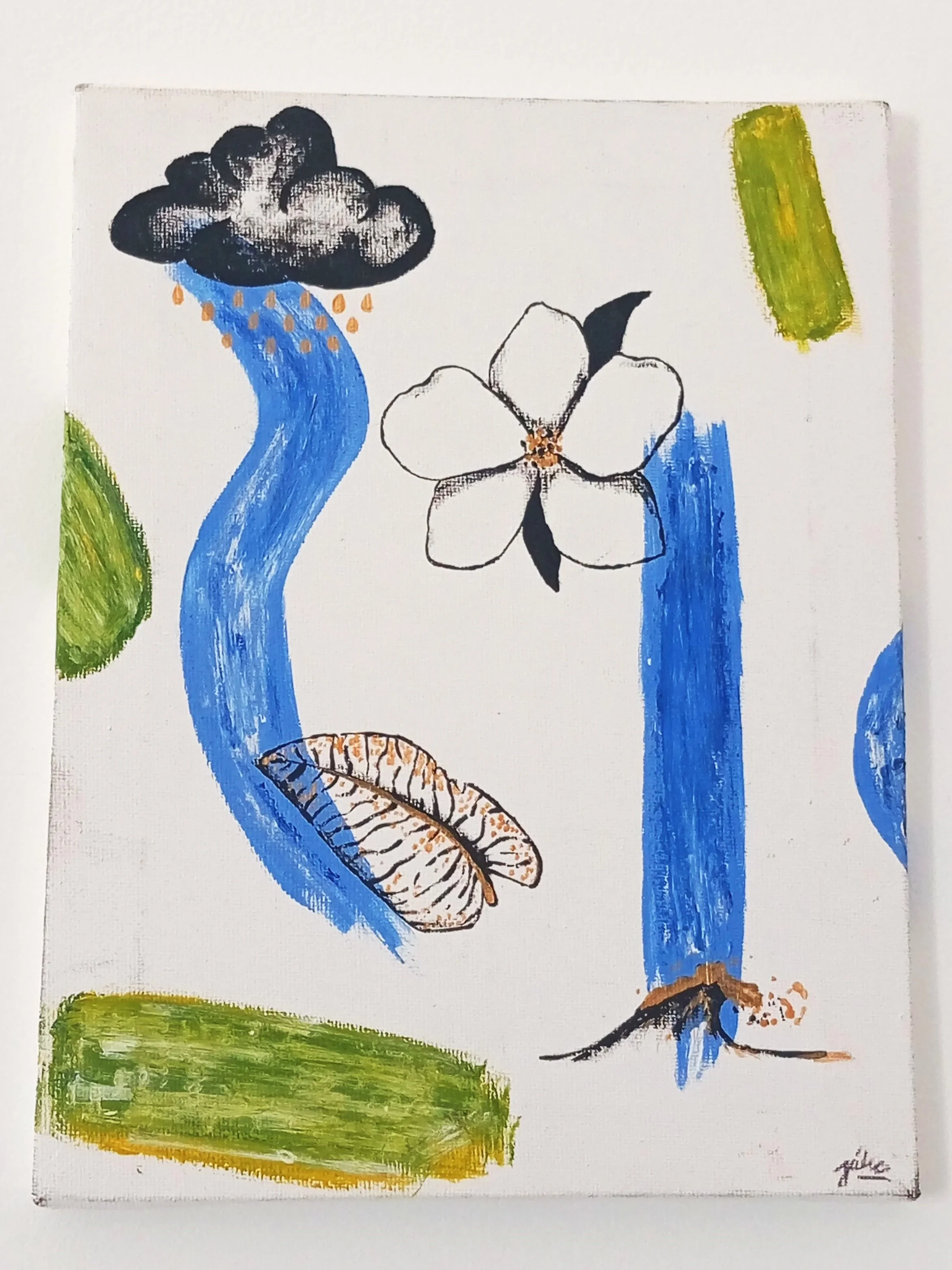 dentro dos passatempos que coleciono, pintar é meu preferido. é minha fonte de felicidade e meio de expressão criativa. as cores vivas me chamam, o pincel desliza tranquilamente sobre a tela, e nesse processo descubro que todo quadro é uma história que tem uma intenção, começo, meio e fim. o resultado pode não condizer com a ideia original, ela se transforma e cria quase sozinha.